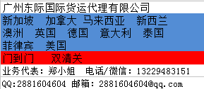 一、中国各大城市到澳大利亚国际门到门运输: 澳大利亚可到达城市:悉尼,墨尔本,布里斯班,阿德莱德,弗里曼特尔(帕斯) 以上地区,目的港含包办所有手续,含30公里内派送上门,不包目的港的关税和GST税,我司可代交关税和GST税,具体提供需要商品编码和货值。 二、海运搬家业务流程: 中国仓库—》卡车运输—》海关通关(中国港口)—》海运/空运 ~~~海上时间:一般11-15天~~~ 到达目的港—》海关清关—》国外代理清关/拖车派送—》您的家 集装箱容积普及: 1)20'GP的实测箱内尺寸:5890mm(长)x2342mm(宽)x2388mm(高),配货毛重一般为17.5吨,体积为28立方米 ; 2)40'GP的实测箱内尺寸:12017mm(长)x2342mm(宽)x2388mm(高),配货毛重一般为17.5吨,体积为54立方米 ; 3)40'HC的实测箱内尺寸:12017mm(长)x2342mm(宽)x2693mm(高),配货毛重一般为17.5吨,体积为68立方米 ; 欢迎您的咨询: 广州东际国际货运代理有限公司 详情请咨询: 业务代表:郑小姐 电话/微信:13229483151 Q Q:2881604604 邮箱:2881604604@qq.com 广州白云仓储部:广州市白云区嘉禾下新村街1号(106国道新村牌坊直入20米右侧) 深圳宝安仓储部:深圳市宝安区福永白石厦新塘工业园安全路2号东际国际货运 (三和汽车维新旁)
