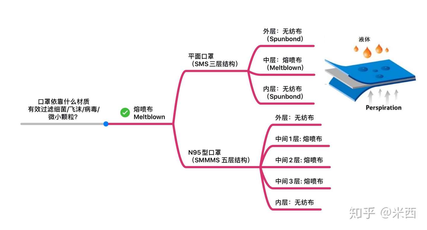 1、熔喷布为聚丙烯PP,纤维直径1-5um,与细菌/飞沫/飞沫核尺寸相近,口罩能否有效过滤颗粒全靠它