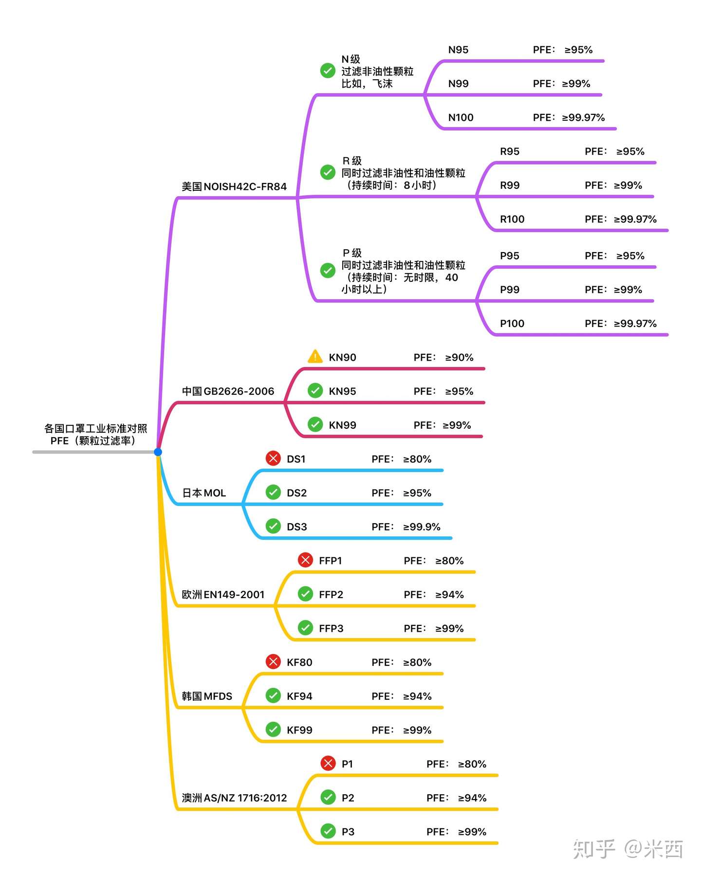 4、各国口罩标准对照划重点: