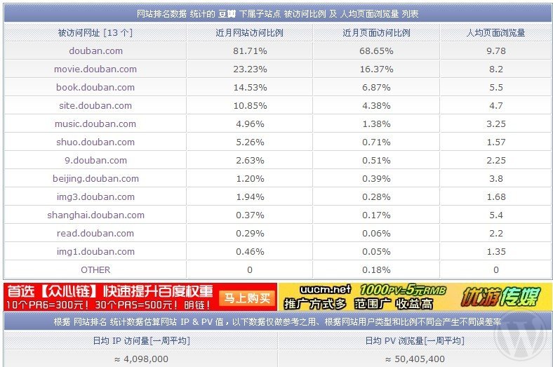 但我们可以根据现有的一些网站数据/流量以及电商相关的比率等来推算或预估豆瓣的收入。在预估收入的时候,我们会用到alexa上面查到的豆瓣IP和PV量(查看>>),虽然不精确,但廖胜于无。