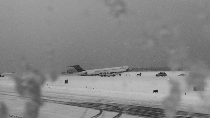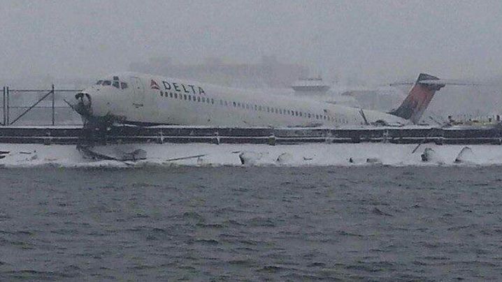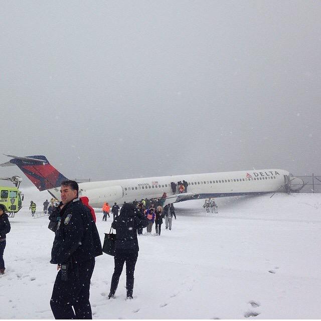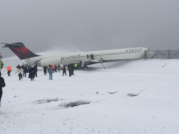 突发:一架客机在大雪中冲出纽约拉瓜迪亚机场跑道 |