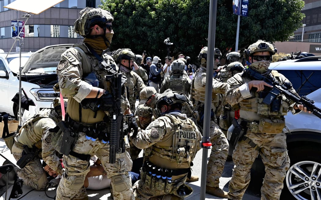 1. 美军少将舍曼确认,洛杉矶部署的七百名海军陆战队与四千名国民警卫队虽无逮捕权,但可在警方到场前临时拘留个人;他们将进城执行保护联邦人员与财产任务,且不携带实弹。