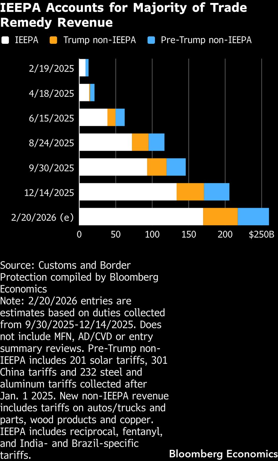 截至12月14日,美国海关与边境保护局(CBP)估算,已依据IEEPA收取约1700亿美元关税,这也是本案争议的核心。
