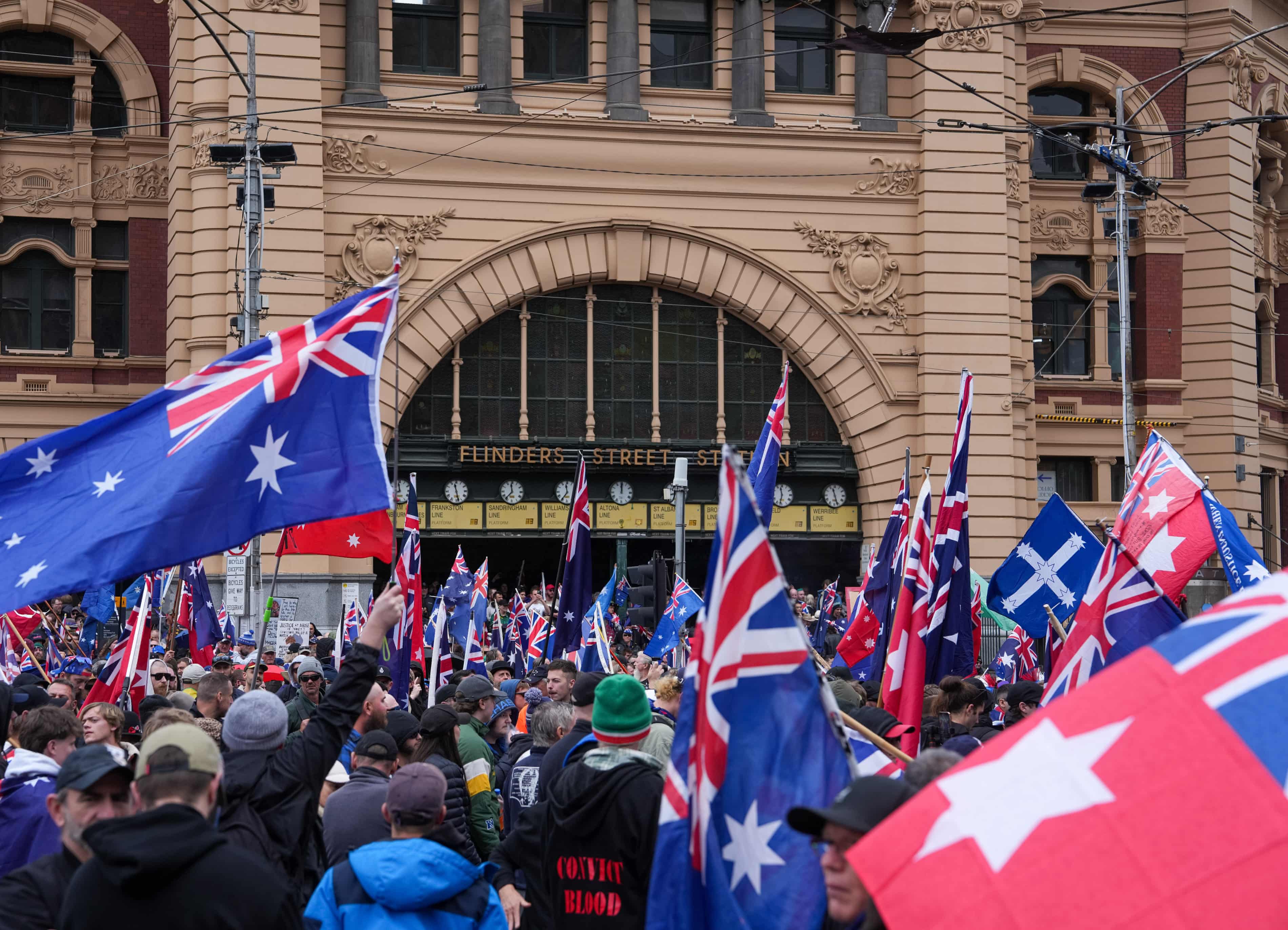 星期天,新纳粹分子在反移民集会开始前大约一个小时抵达Flinders Street火车站。 大约一百名身穿黑色衣服的男子成群结队地穿过Princes Bridge,穿过已经聚集在澳洲国旗海洋下的大量人群。 许多人在星期天所谓的“为澳洲游行”之前,以及许多参加游行的人都说已知的新纳粹分子广泛宣传这次集会并不意味着它是他们组织的;或者在人群中存在的“民族社会主义网络”(NSN)并不意味着它对当天的信息至关重要。 ![]() 即使他们在那里,一些人说你也不必同意他们所说的一切才能参加。 然而在墨尔本,新纳粹分子不仅对游行至关重要,他们还引领了游行一路走到议会的台阶前。 而且,“民族社会主义网络”的领导人Thomas Sewell在向欢呼雀跃的人群发表讲话时,明确阐述了他设想的“我的手下”在“为澳洲的生存”而战中对抗“第三世界的庞大帝国”所扮演的角色。 据称该组织的成员随后在星期天晚上袭击了墨尔本的Kings Domain的原住民抗议地点“主权营地”。 同样在悉尼,该组织的新州领导人在澳洲国旗在背景中飘扬时向欢呼着“把他们送回去”的旁观者发表了讲话。 分发了关于“鼠疫级别”移民的极右翼政党的传单。 澳洲的移民数字并未创下历史新高。 政府表示海外净移民人数比最近的峰值下降了37%。 在一些城市,政客们在集会上发表了讲话。 在此之前,部分媒体采访了游行组织者,并在电视上播放了传单。 维多利亚大学的副教授Mario Peucker在谈到极右翼人物星期天的出现时说:“这仅仅是为了招募成员。这是一个与基本上是他们的目标群体的人混在一起的机会……把自己呈现为他们唯一的代言人。” 维州警方表示现在确定是否将主权营地袭击事件或在集会上投诉的任何其他活动作为“出于偏见”的案件进行调查还为时过早,“出于偏见”是警方用于描述也可能被描述为仇恨犯罪的罪行的术语。 从TikTok到街头 第一次提到“为澳洲游行”是在巴勒斯坦行动小组的游行之后,当时大量人群(警方估计有9万人,但组织者说这个数字接近30万人)于8月3日走过悉尼海港大桥,以反对以色列在加沙的行径。 在网上,这一事件激怒了几个知名的民族主义账户,其中一个账户制作了覆盖着澳洲国旗的桥梁的AI生成图像。 不久之后,一个匿名账户发布了一段TikTok视频。 视频呼吁在8月31日举行集会:“我们终于站起来为自己说话,夺回这个国家。” 这段视频包括2005年Cronulla种族骚乱的录像。 一位在网上名为Bec Freedom的女性声称与这段视频的创作者“一个年轻的孩子”取得了联系。 在八月初,她开始回复一国党的韩森和各路网红的推文,并在海报上呼吁澳洲人在8月31日“奋起”。 “为澳洲游行”网站于8月8日启动,ABC报道说,早期版本的“澳洲游行”网站包括提及“遣返移民”这一白人至上主义概念,即强迫将移民遣返回原籍国。ABC的报道明确指出它无法确定究竟是谁对该网站负责。 随着日期的临近,人们对每个州的集会组织者是谁感到困惑,尽管“为澳洲游行”Facebook页面上的声明将这些活动与白人至上主义者撇清关系。 这些集会还汇集了许多疫情时代反封城运动和其他要素,但尽管有“为澳洲游行”账户的信息,但纳粹团体显然打算利用这些活动,在事前发布新闻稿,声称与“全国范围内的活动组织者保持积极的持续联系”,并承诺成员将在“为澳洲游行”活动中发表演讲。 作为回应,Bec在Facebook上发帖说,她不再参与墨尔本活动。“民族社会主义网络将不会被阻止或禁止参加“澳洲游行”活动,”她写道。“欢迎任何对这些活动的原因持有相似观点的人参加,只要他们不制造任何麻烦或使用暴力。 任何制造麻烦或使用暴力的人都将被清除。” 她还说:“只要记住,在那里会有一些我们不一定完全同意的人,但如果我们都能够在统一的信念和我们的旗帜下团结起来,那么我们就可以真正产生一种视觉冲击,表明我们对澳洲目前的状态不满意。” 集会代表着一次新的升级 在星期天,各种关于对移民人数的看法都显现出来,但对许多人来说恢复想象中的白人澳洲显然是中心主题。 堪培拉大学研究极右势力的Jordan McSwiney认为这个周末的集会让人想起了2015-17年间“重建澳洲”的反伊斯兰和反移民街头抗议活动。 然而,这一次极右翼团体并没有掩盖他们的参与。 McSwiney注意到“对于“民族社会主义网络”来说,基本上是利用‘普通父母’的掩护向一大群可能非常关心问题的人兜售白人至上主义是多么容易……而阻止移民并不能解决这些问题。” 他认为州和联邦政府最近对这些运动的回应——例如,禁止已知的纳粹标志——分散了人们的注意力,并且并没有真正让新纳粹分子在澳洲组织和招募成员变得更加困难。 一些政客对集会做出了“软弱的谴责”以及其他人的出席也是如此。 对于Peucker来说,星期天的集会代表着一次新的升级,表明了一些认为自己是“澳洲主流普通人”的人的观点与公开的白人民族主义团体的政治议程是多么重叠。 Peucker说:“并不天显然存在的白人至上主义以某种邪恶、隐秘的方式被新纳粹分子引入到政治主流中的。它一直存在于主流的部分地区。” 《卫报》已经联系“为澳洲游行”和Bec Freedom寻求意见。 https://www.theguardian.com/aust ... te-supremacy-ntwnfb |